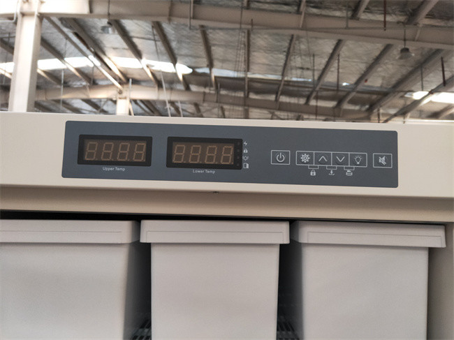 डबल इंडिपेंडेंट चैंबर्स के साथ 528 लीटर कैपेसिटी ईमानदार स्टैंडिंग डीप बायोमेडिकल वैक्सीन फ्रीजर फ्रिज कैबिनेट